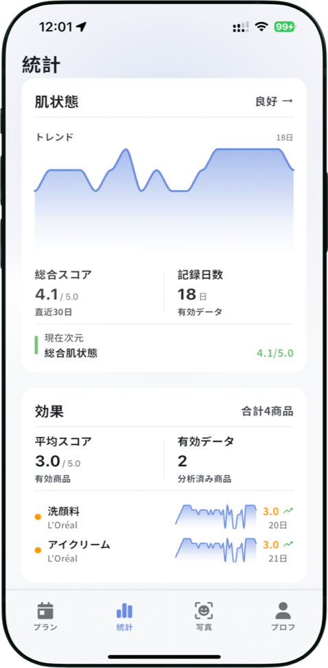 敏感肌に合うケア方法が見つかりました。このアプリのデータ分析に感謝!